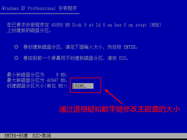 18) 调整主磁盘分区大小,完毕之后,按Enter
