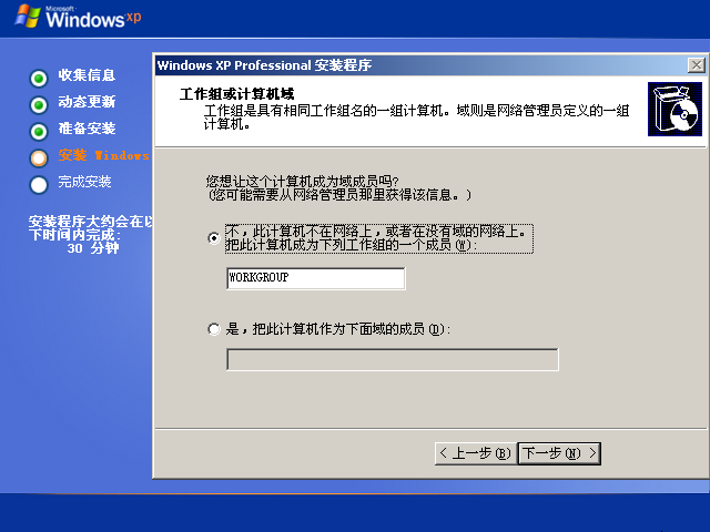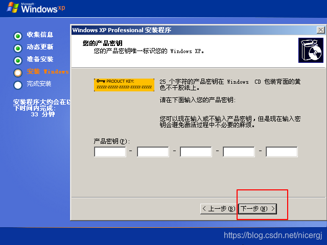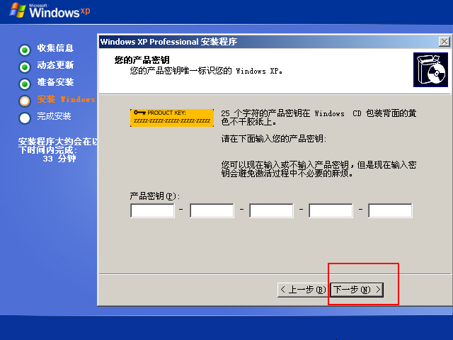 安装过程中如果忽略了密匙,即没有输入正确的密匙,那么就需要激活win xp系统,否则系统只能试用30天。