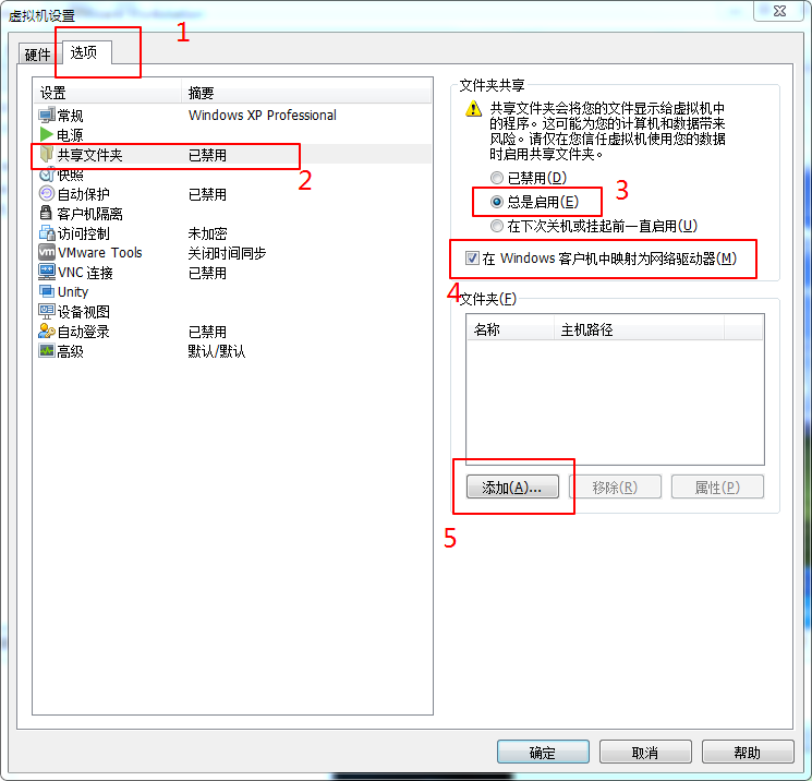 1) 先在主机创建一个文件夹用以虚拟机与主机的文件共享