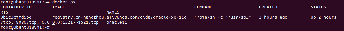 docker run -d -p 1521:1521 --name oracle11 registry.cn-hangzhou.aliyuncs.com/qida/oracle-xe-11g