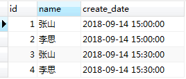 先查询表几条demo数据,名字相同,时间不同