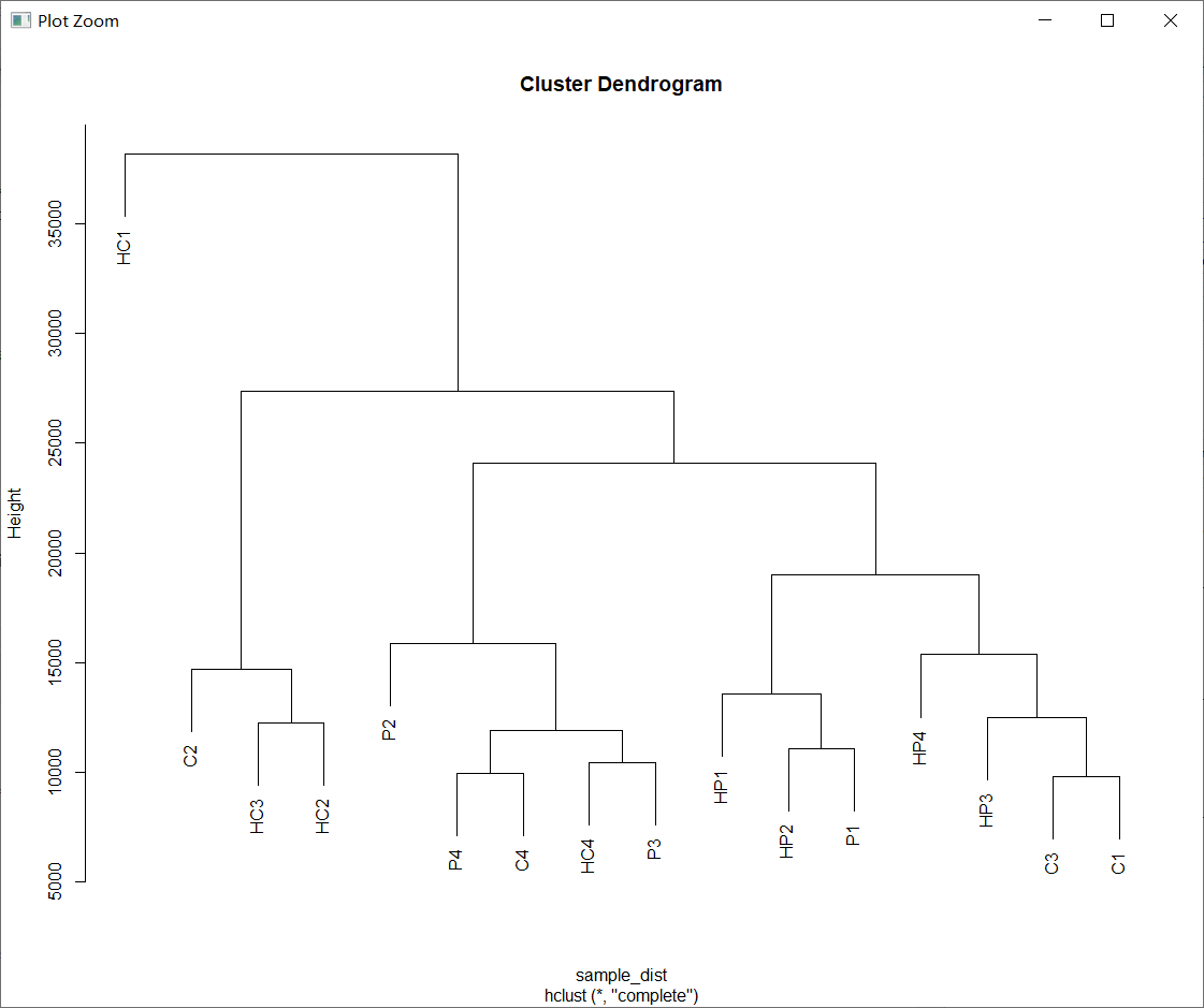 sample_dist<-dist(t(gene_exp))#先转置在计算距离矩阵##聚类