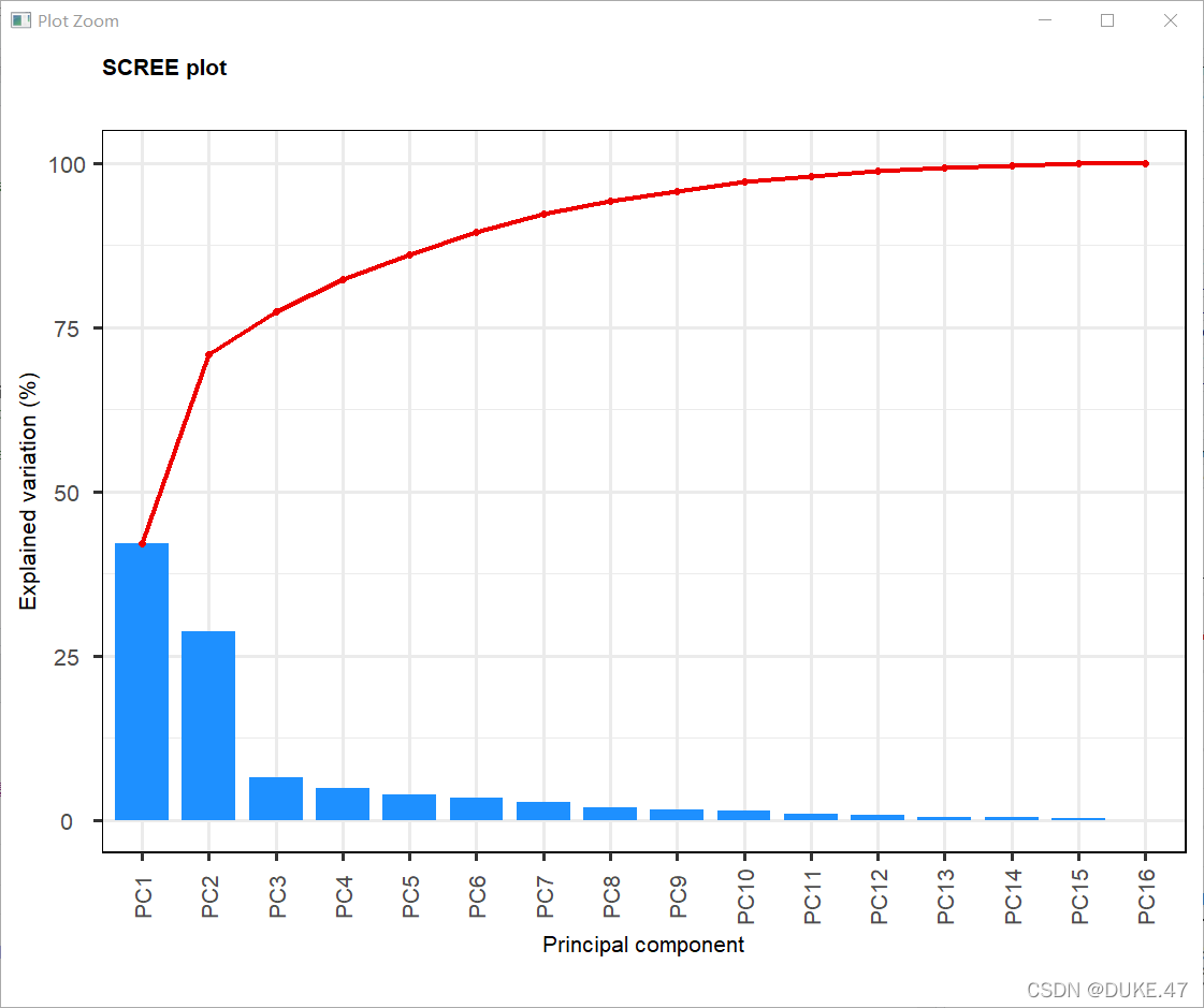 pca_rotated[1:4,1:4]screeplot(pca)#画图:主成分对样本差异的解释度