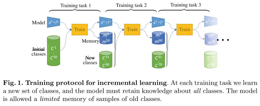h=f(x)定义为特征提取过程,g()可以被定义为分类器。这也是增量学习中常被采用的结构,即双阶段,一个分类器阶段,一个特征提取阶段。