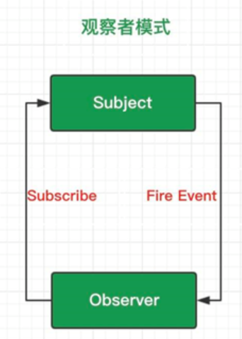 观察者模式: 观察者(Observer)直接订阅(Subscribe)主题(Subject),而当主题被激活的时候,会触发(Fire Event)观察者里的事件。