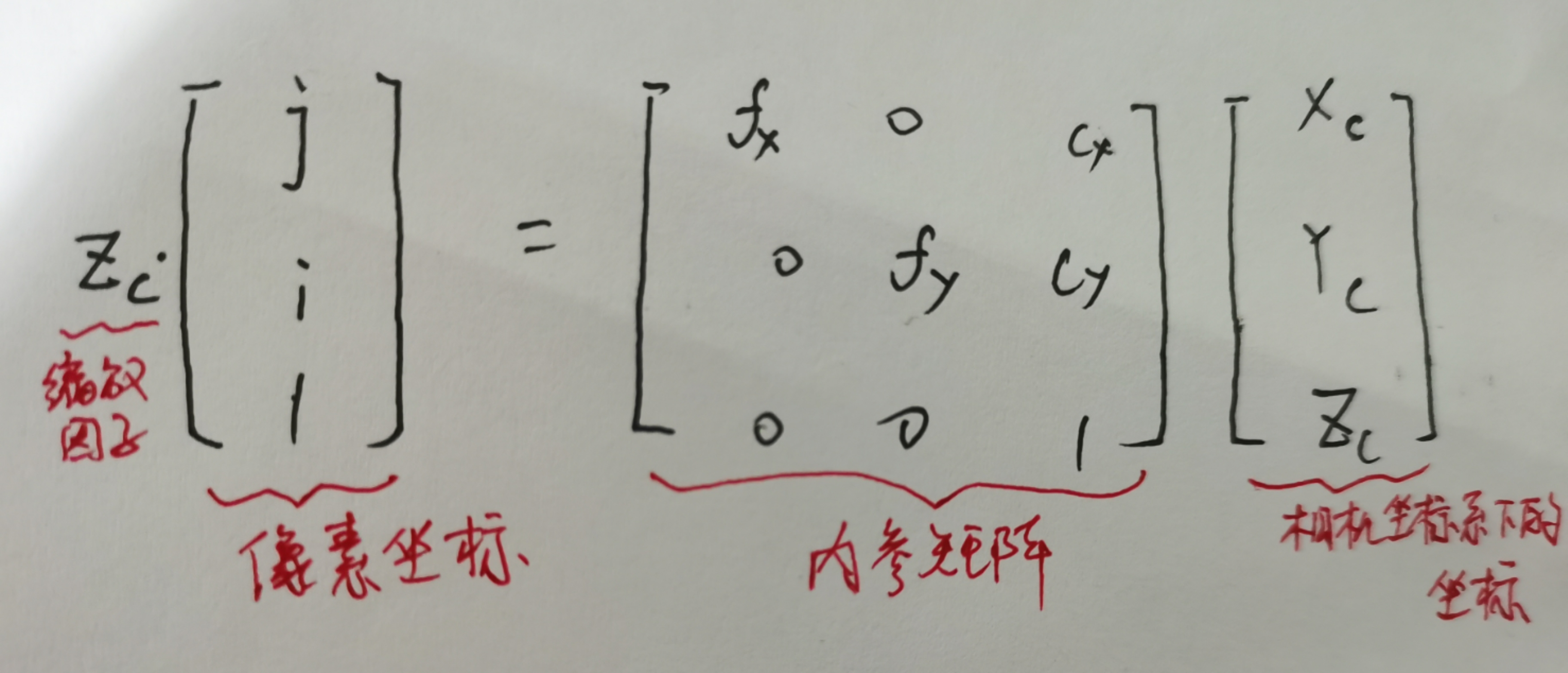 是相机内参的逆。而相机内参的作用是:缩放因子 x 像素坐标 = 相机内参 x 相机坐标系坐标