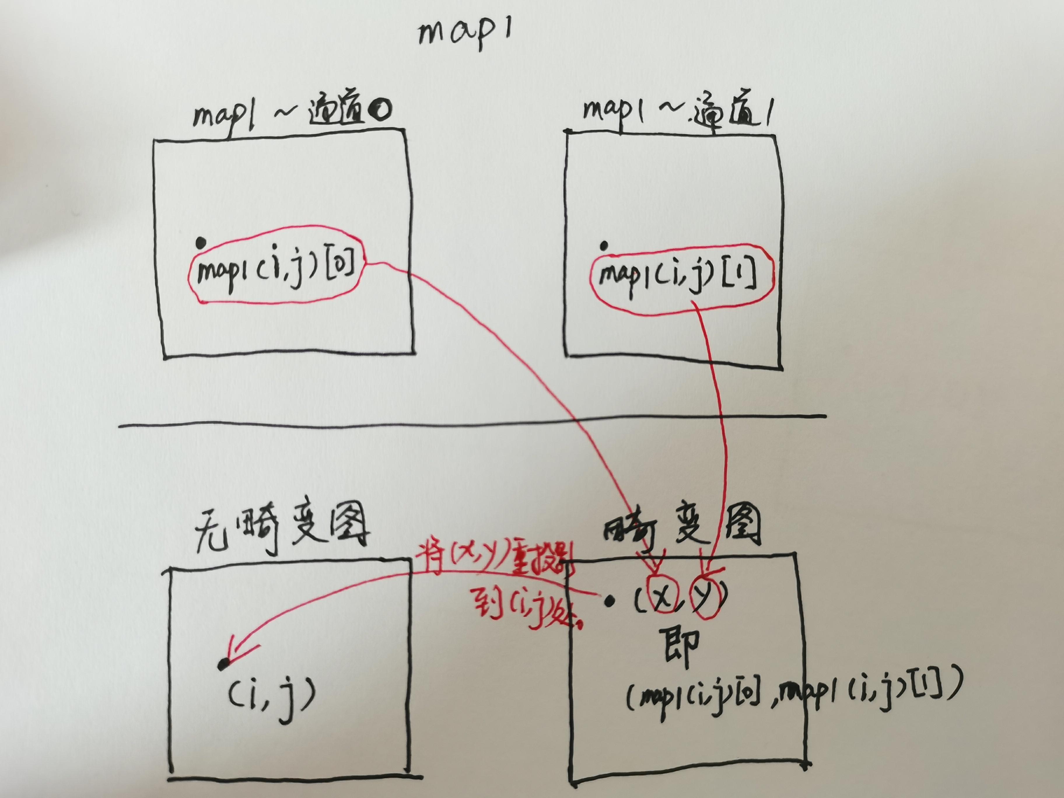 而此时的map2是为了做插值、让矫正后图像更清晰而用,本文不做介绍。