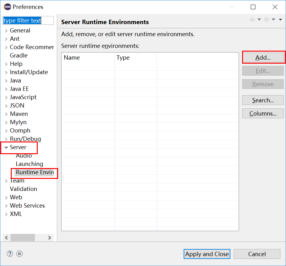 (2)跳出对话框中,server-->Runtime Environment,击点add按钮