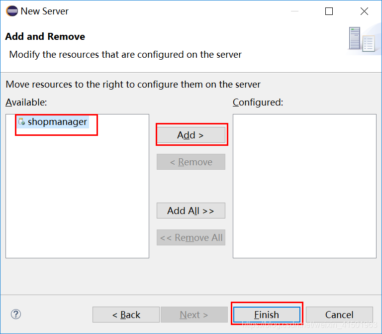 (9)先击点左边项目名,中间add按钮,之后击点finish按钮