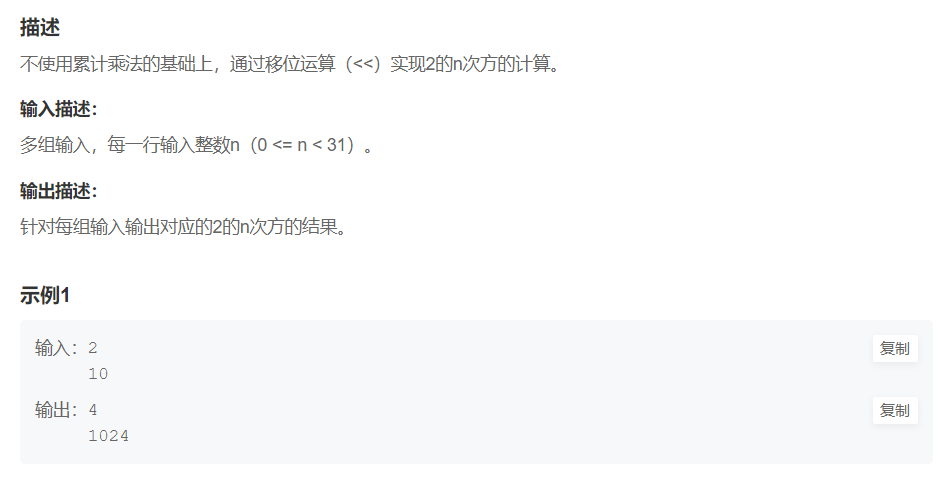 {int x;while(scanf("%d",&x)!=EOF){printf("%d\n",1<<x);}return 0;