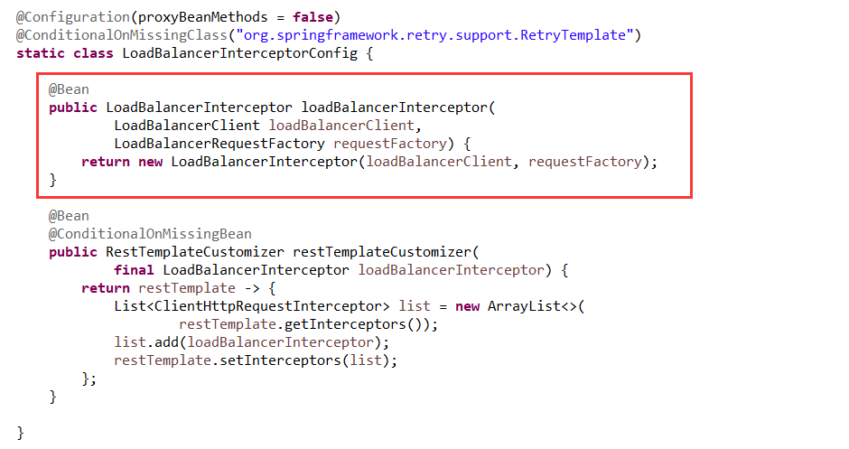 在使用Ribbon做负载均衡时,在配置RestTemplate时会加入如下注解: