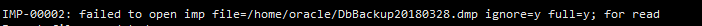报错:IMP-00002: failed to open /home/userct/oss-shanxi/DbBackup20180328.dmp for read