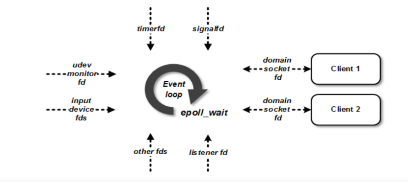 • 其它:监听如timer(用于如睡眠锁屏等场景)和signal(如收到SIGINT, SIGTERM, SIGQUIT时退出主循环)等事件。timer和signal可以分别用timerfd和signalfd来用fd来表示。另外还有logind的dbus连接等。