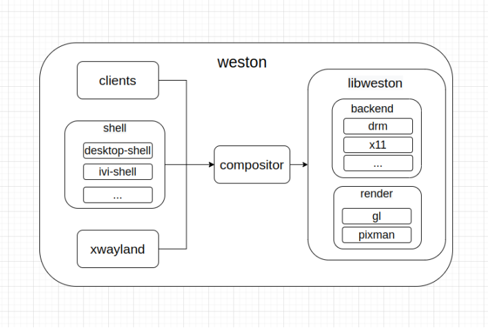 backend-drm:默认渲染后端,支持Pixman和OpenGL/ES