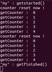 public:ThreadTest(){connect(this, SIGNAL(counter(int)), this, SLOT(getCounter(int)));connect(this, SIGNAL(counter_reset()), this, SLOT(on_counter_reset()));}void run(){int m_counter = 0;for(int i=0; i<10; i++){if(0==i%5){m_counter = 0;emit counter_reset();}emit counter(m_counter);m_counter = m_counter + 1;msleep(200);}}signals:void counter(int n);void counter_reset();public slots:void getCounter(int n){qDebug()<< "getCounter : "<<n;}void on_counter_reset(){qDebug()<<" counter reset now !";}