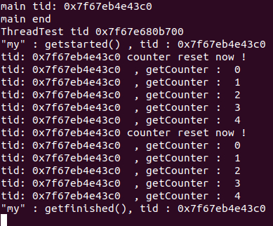public:MyClass(){}public slots:void getstarted(){qDebug()<<objectName()<<":"<<"getstarted() , tid :"<<QThread::currentThreadId();}void getfinished(){qDebug()<<objectName()<<":"<<"getfinished(), tid :"<<QThread::currentThreadId();}