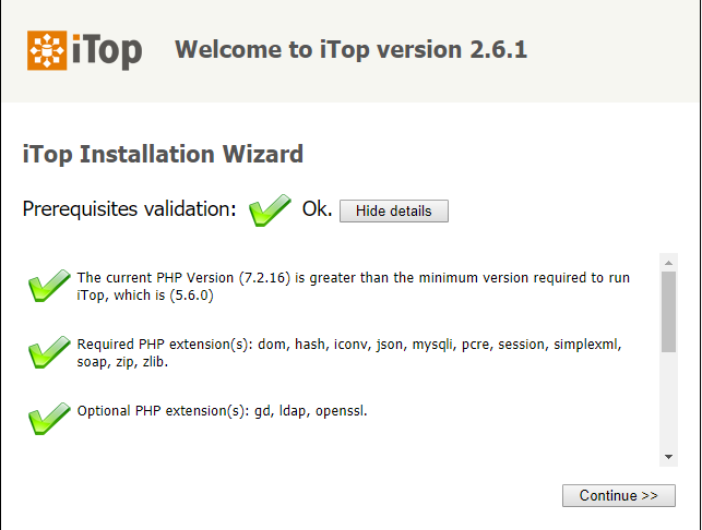 iTop 2.5只支持PHP5.6以上版本,本例安装的是php72w版本