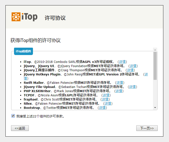 2.5.1版本:https://jaist.dl.sourceforge.net/project/itop/itop/2.5.1/iTop-2.5.1-4123.zip 这里找到一个汉化比较全的包:https://pan.baidu.com/s/1u-UEJC84Xm2svKdNcSf0iQ 安装完成后替换掉/env-production/dictionaries/zh-cn.dict.php