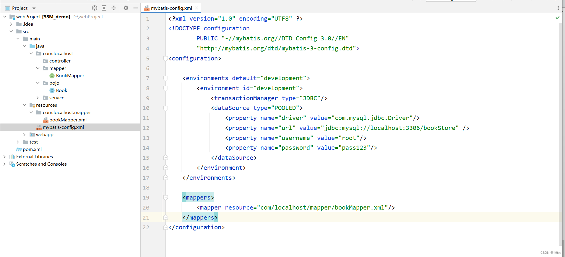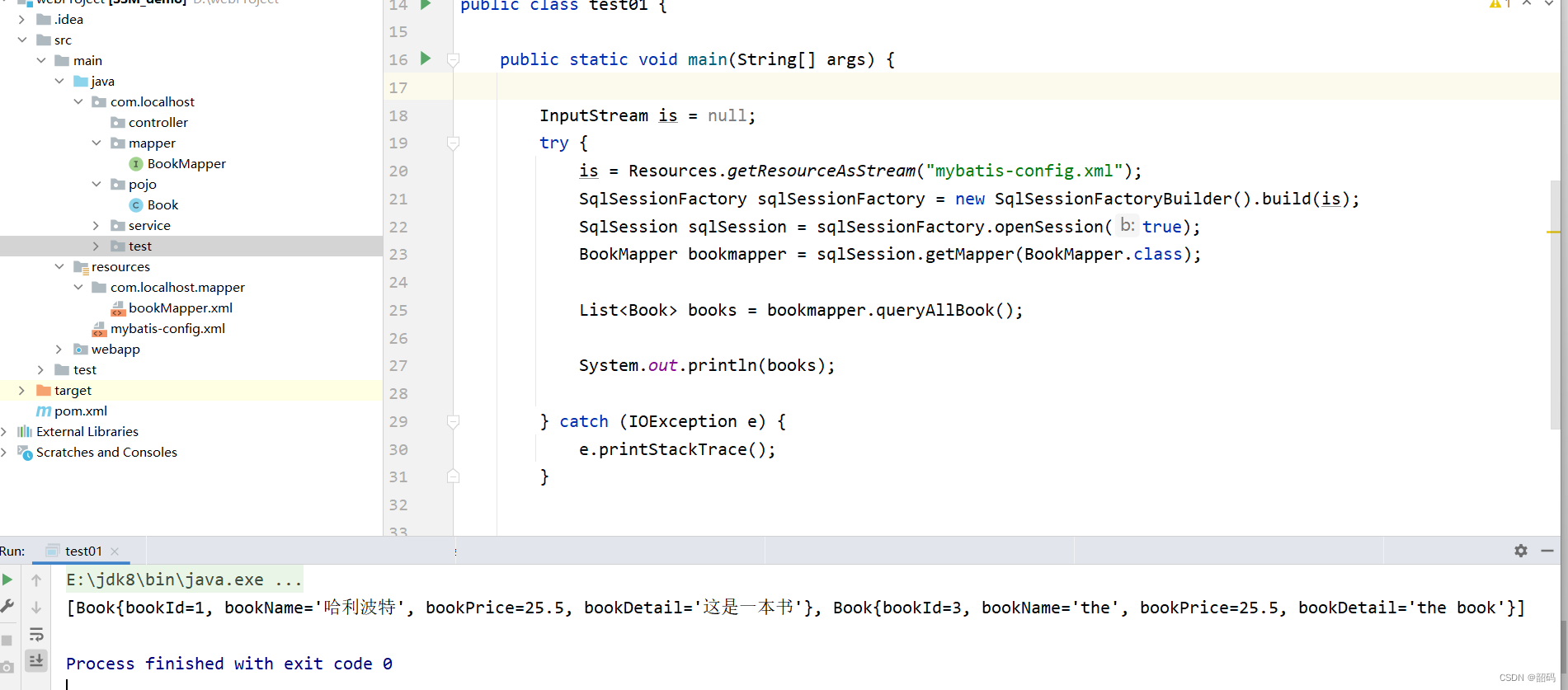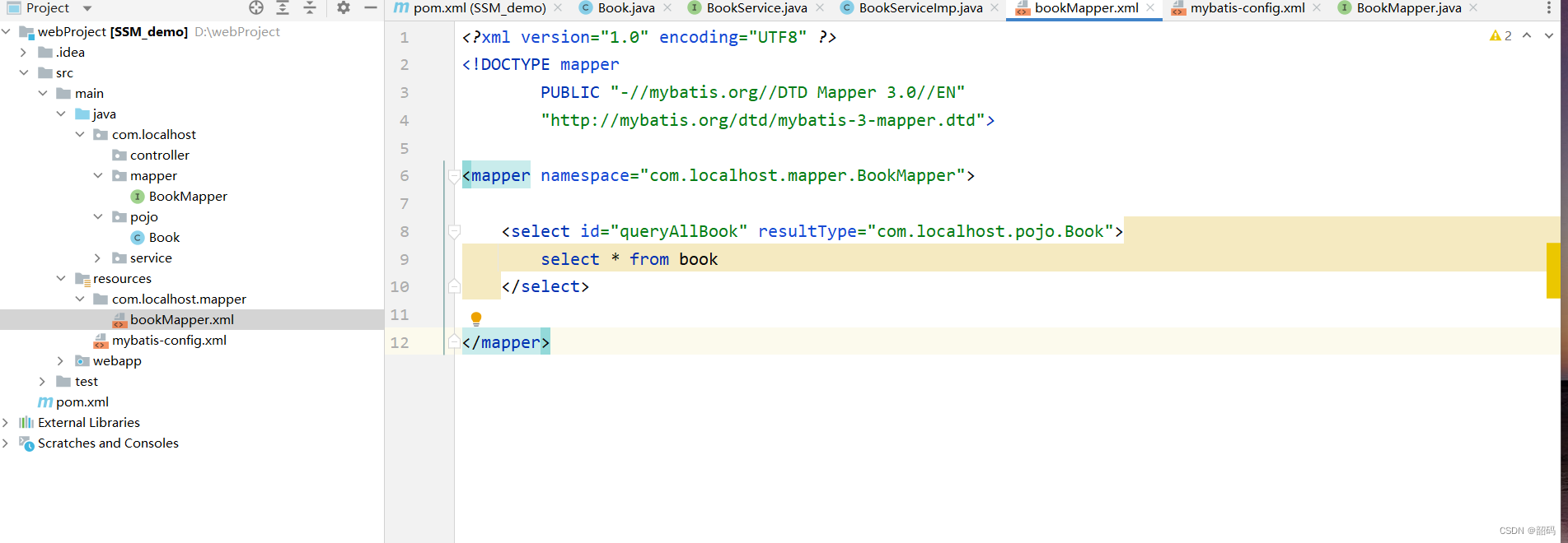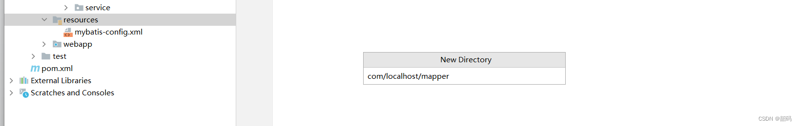 注:我的bookMapper.xml的路径在resources -> com -> localhost -> mapper目录下(如图创建目录)