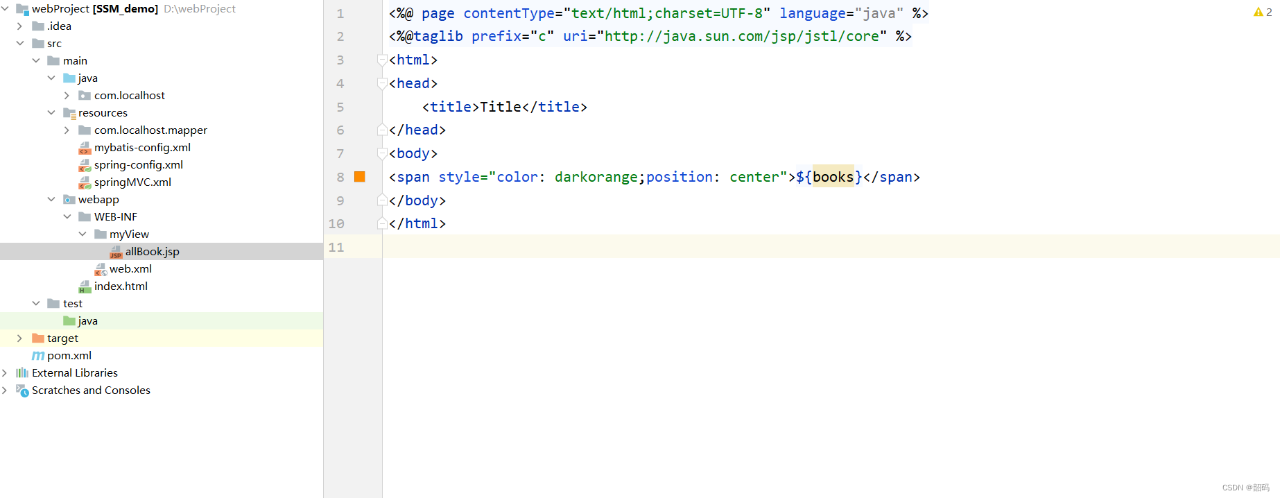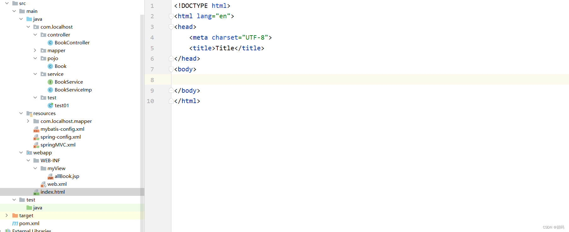 index.html没写东西,我们直接在地址栏输入http://localhost:8080/SSM_demo/allBook