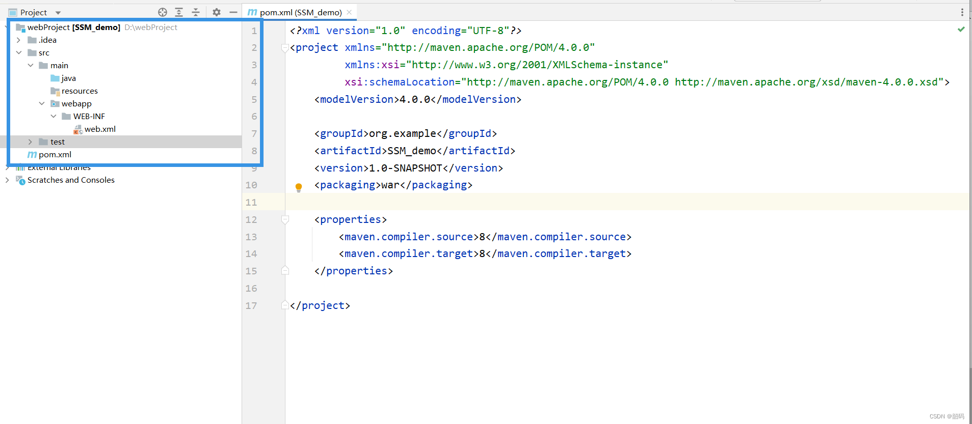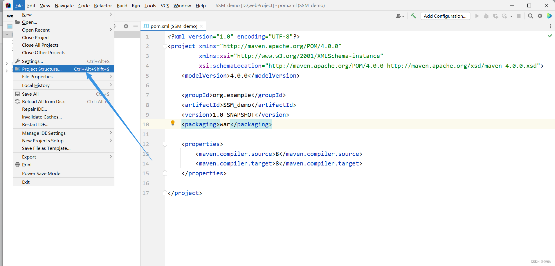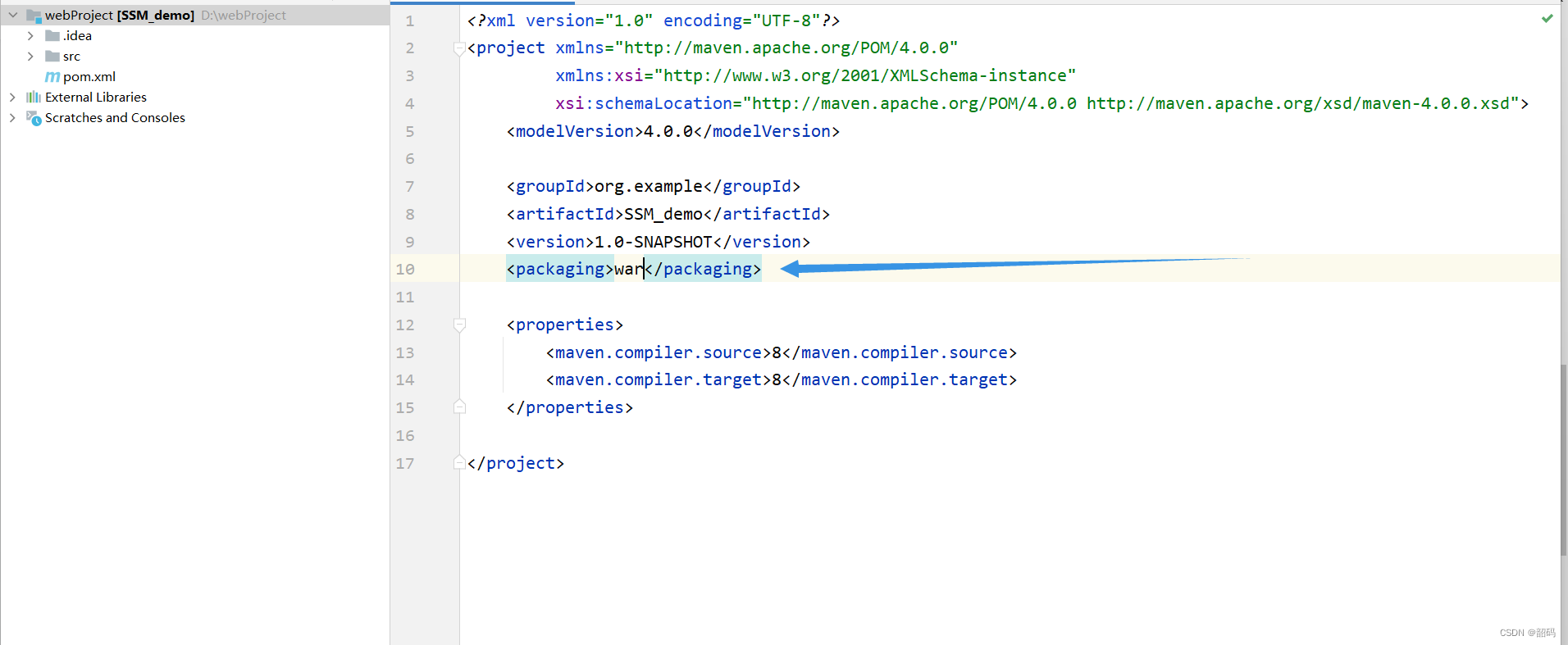 创建好后 在pom.xml设置打包方式为 war(记得刷新maven)