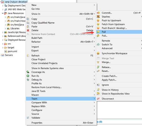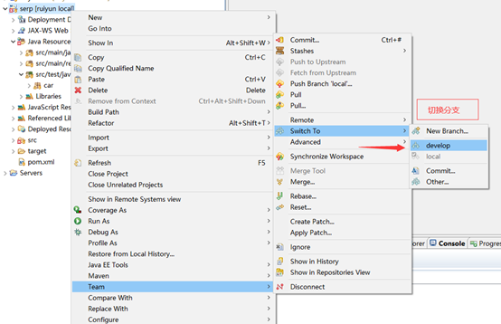 ◆流程:切换到开发分支 ->pull ->切到本地分支->合并开发分支
