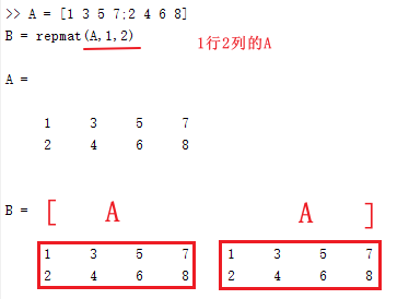 B = repmat(A,m,n); % 产生m行n列的A,并组成矩阵