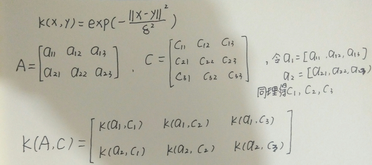 % A是m1行n列的矩阵;C是m行n列的矩阵KA = exp(-(repmat(sum(A.*A,2),1,m)+repmat(sum(C.*C,2)',m1,1)-2*A*C')/(p^2)); % K(A,C)