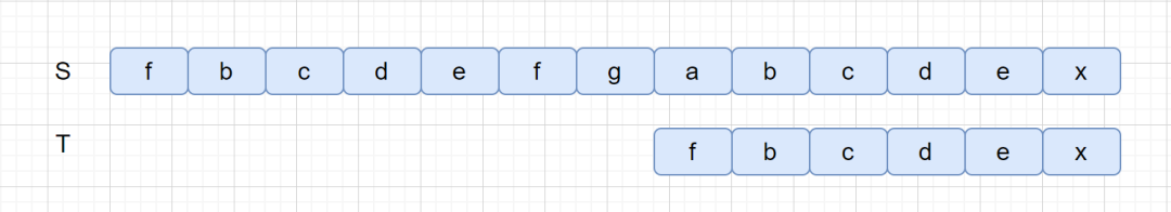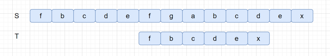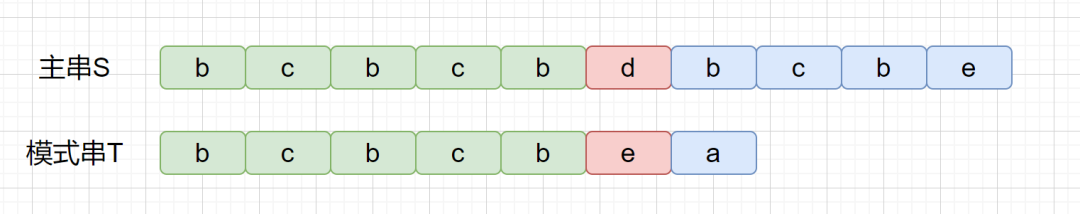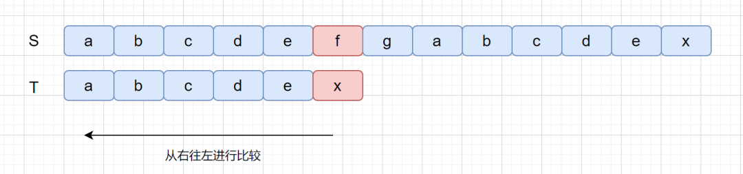 好后缀其实也很容易理解,我们之前说过 BM 算法是从右往左进行比较,下面我们来看下面这个例子。