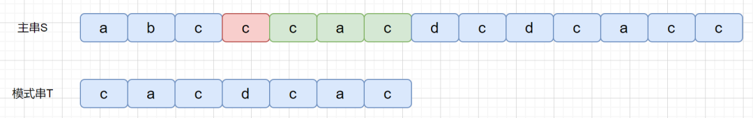 字符串匹配:设 S 和 T 是给定的两个串,在主串 S 中找到模式串 T 的过程称为字符串匹配,如果在主串 S 中找到模式串 T ,则称匹配成功,函数返回 T 在 S 中首次出现的位置,否则匹配不成功,返回 -1。