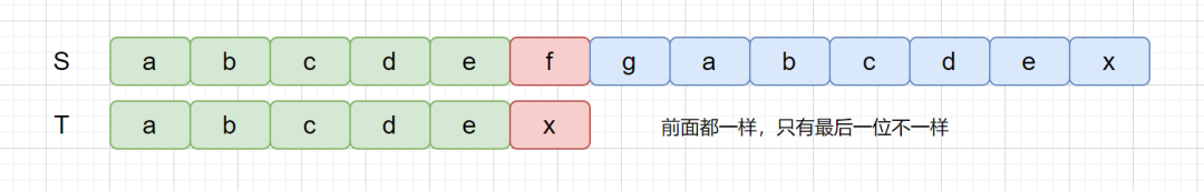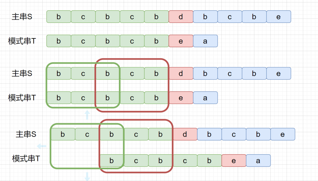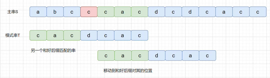 我们的最长公共前后缀如下图,则我们需要这样移动