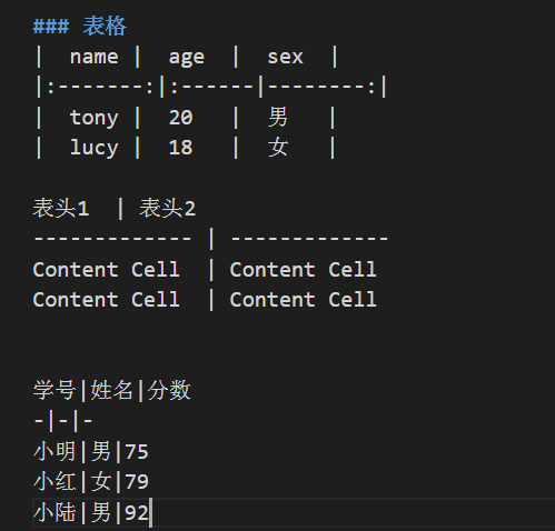 从这3种不同写法看,表格的格式不一定要对的非常起,但是为了好看,对齐肯定是最好的,第一种的分割线后面的冒号表示对齐方式,写在左边表示左对齐,右边为右对齐,两边都写表示居中,还是有点意思的,不过现实出来的结果是,表格外面并没有线框包起来,不知道别人的怎么弄的