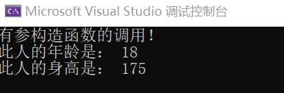 {Person p(18,175);cout << "此人的年龄是: " << p.m_Age << endl;cout << "此人的身高是: " << *(p.m_Height) << endl;return 0;