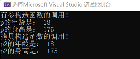 {Person p(18, 175);cout << "p的年龄是: " << p.m_Age << endl;cout << "p的身高是: " << *(p.m_Height) << endl;Person p2(p);cout << "p2的年龄是: " << p2.m_Age << endl;cout << "p2的身高是: " << *(p2.m_Height) << endl;return 0;