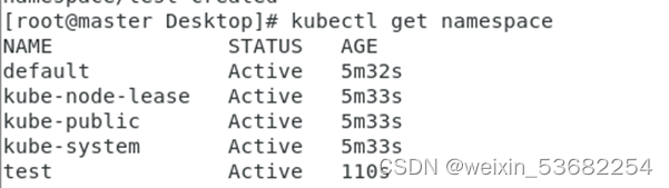 查看namespace,发现其中有我们新建的test,表示我们创建成功