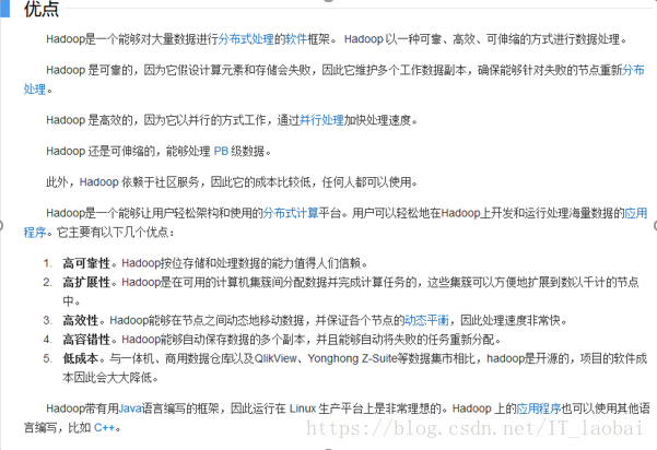 Hadoop用Java编写的开源软件框架,用于分布式存储,并对非常大的数据集进行分布式处理,