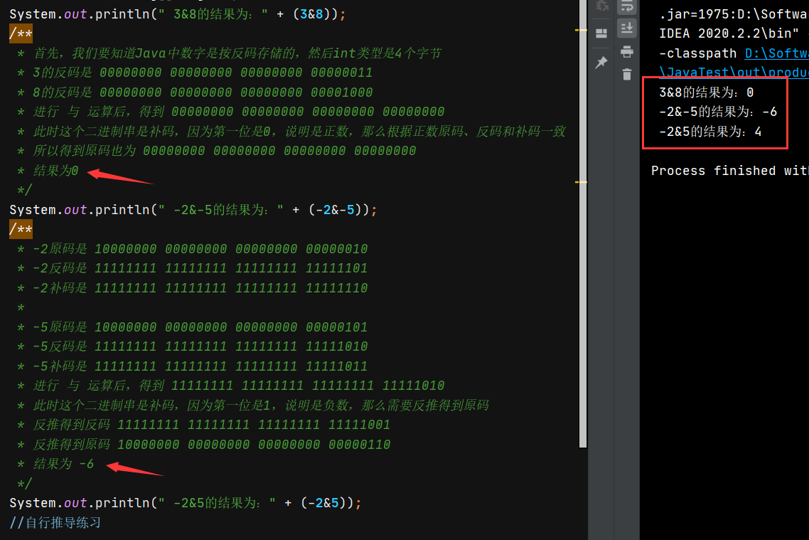 所有的逻辑运算都是按位计算的,所以第一步就是先把数据转成二进制,然后相应位进行 与 运算,具体运算过程可以看下图中的注释。