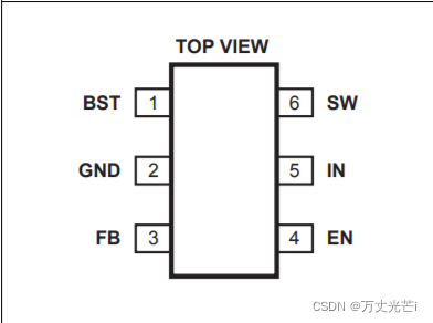 2.GND:地面。调节输出电压的电压参考。需要特殊的布局考虑。将该节点与D1到C1(看典型应用电路)地路隔离,以防止产生开关电流尖峰。