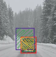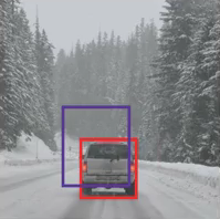 在上图,红色框是实际的边界框,蓝色框是预测的边界框。我们如何确定它是否是一个好的预测?IoU ,全称 Intersection over Union,将计算这两个框的并集上的交集面积。该区域将是: