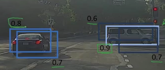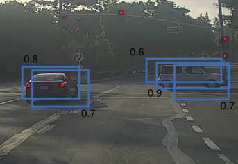 在这里,汽车被多次识别。Non-Max Suppression 技术对此进行了清理,以便我们对每个对象仅进行一次检测。