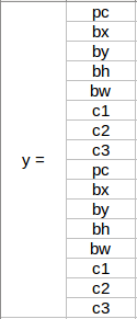 bx、 by、 bh和bw将仅相对于该网格进行计算。此网格的 y 标签将是: