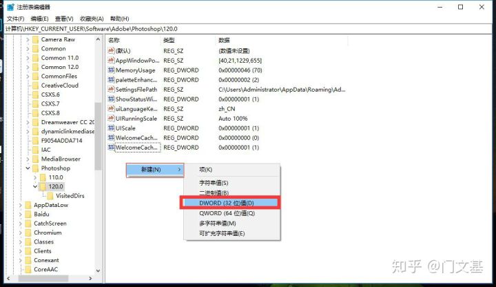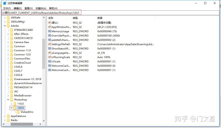 计算机\HKEY_CURRENT_USER\Software\Adobe\Photoshop\120.0(没有120就选110)