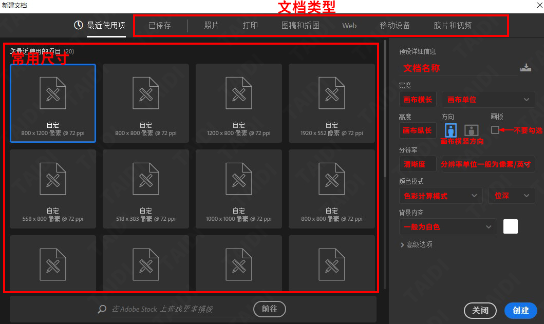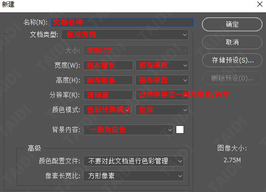 ①分辨率:打印时用300分辨率(大尺寸设计稿分比率会根据具体情况变小);屏幕显示时用72分辨率
