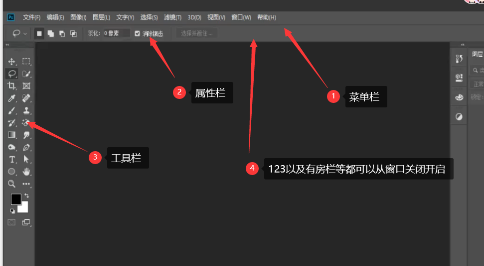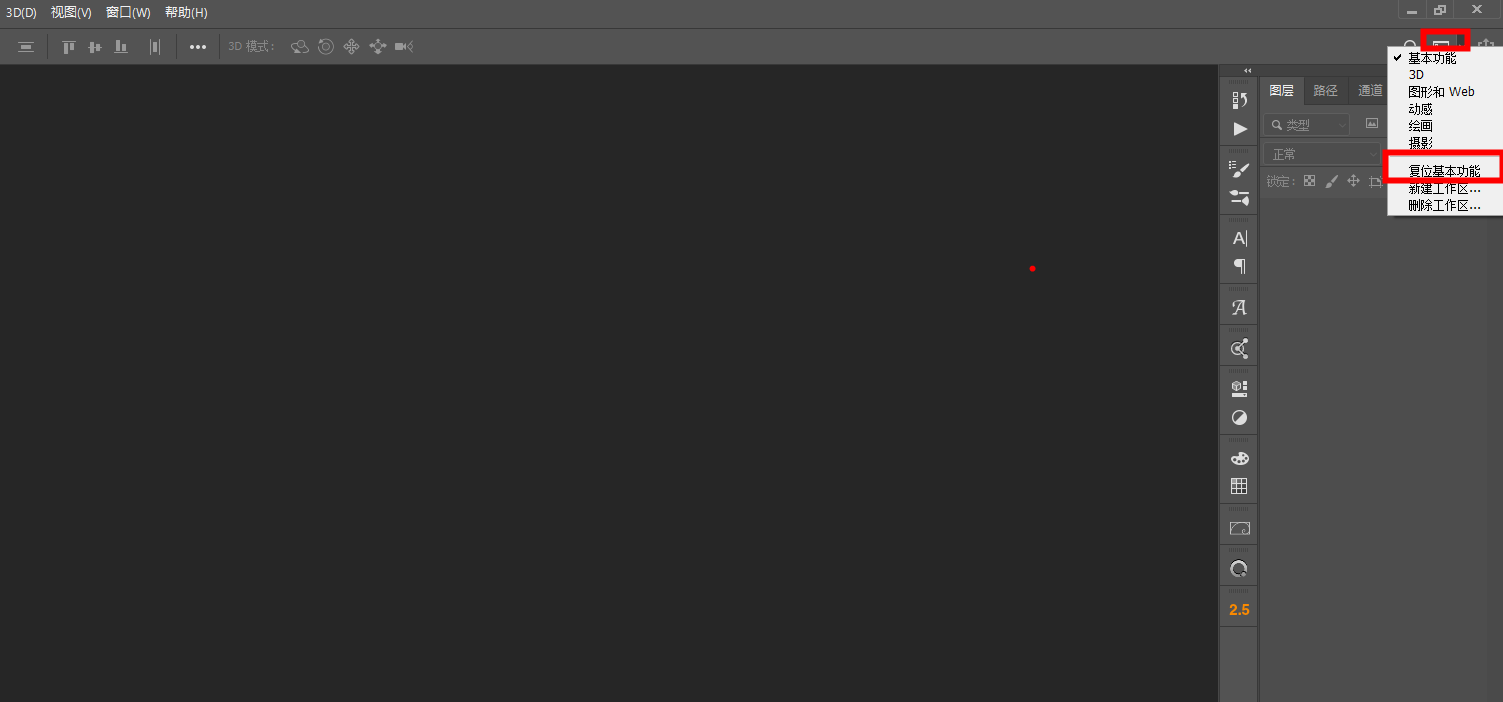 ①文件——打开(快捷键ctrl+o欧),选择打开面板后不可拖拽。