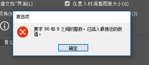 问题:ps首选项出现要求96和8之间的整数怎么办?