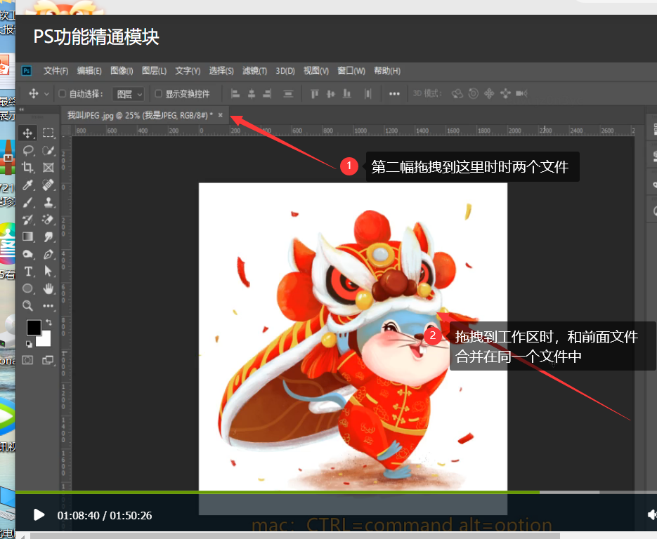 ②拖拽打开:在计算机里选中需要打开的文件点击并拖拽至ps图标上,然后移动到菜单栏或属性栏。