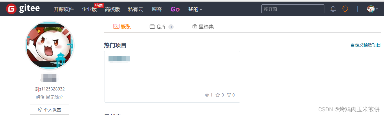 这里需要输入的用户名为gitee个人主页上@后面那一串字符