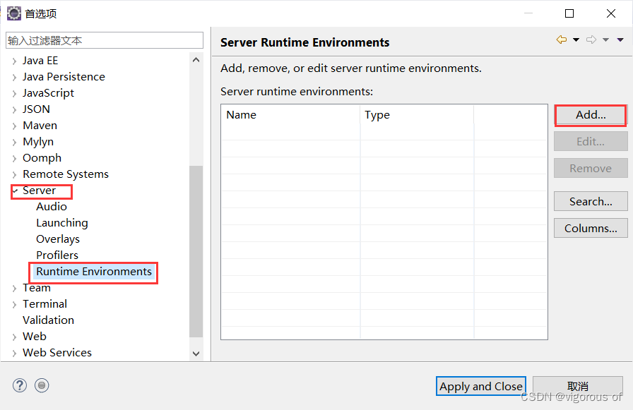 2、找到Server下面的Runtime Environments双击,点击Add添加tomcat