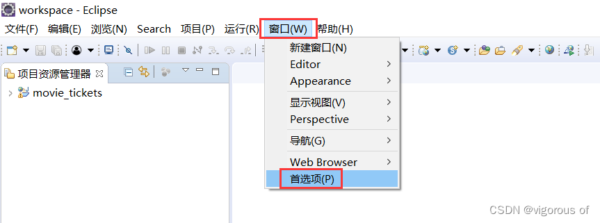 1、打开eclipse,点击窗口 > 首选项