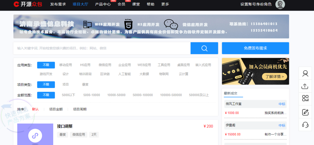 找兼职的地方,主要是入门级项目,不适合专业程序员,上面各类需求发布都有不限于软件开发行业,更适合新手。